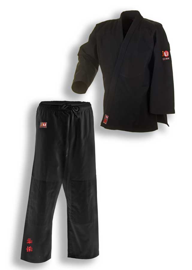 Special: Am Hosenbein ist in rot das japanische Zeichen für Ju-Jutsu eingestickt, ein weiterer edler Stick ist am rechten Arm