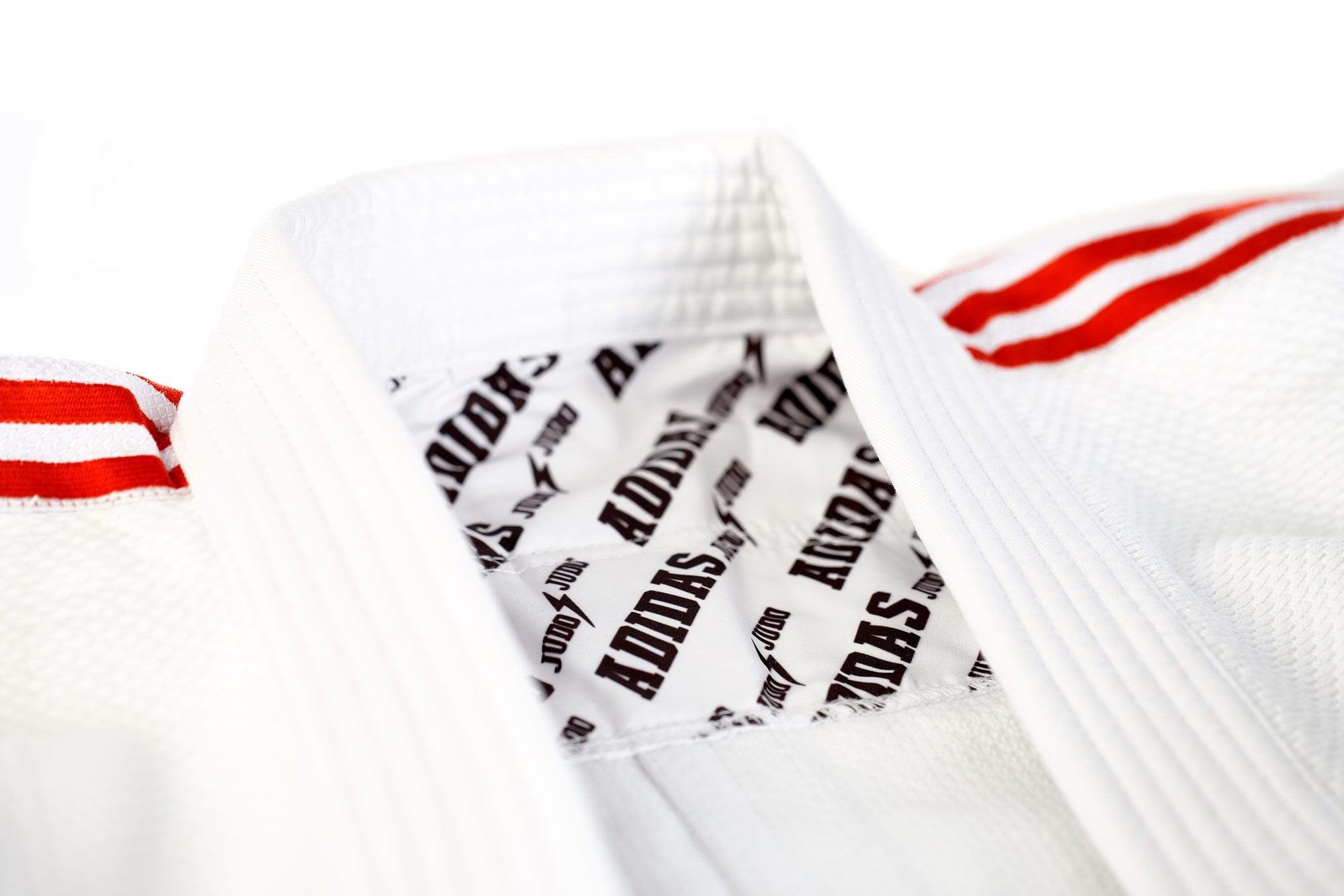 adidas Judo-Anzug "Quest" weiß/rote Streifen, J690