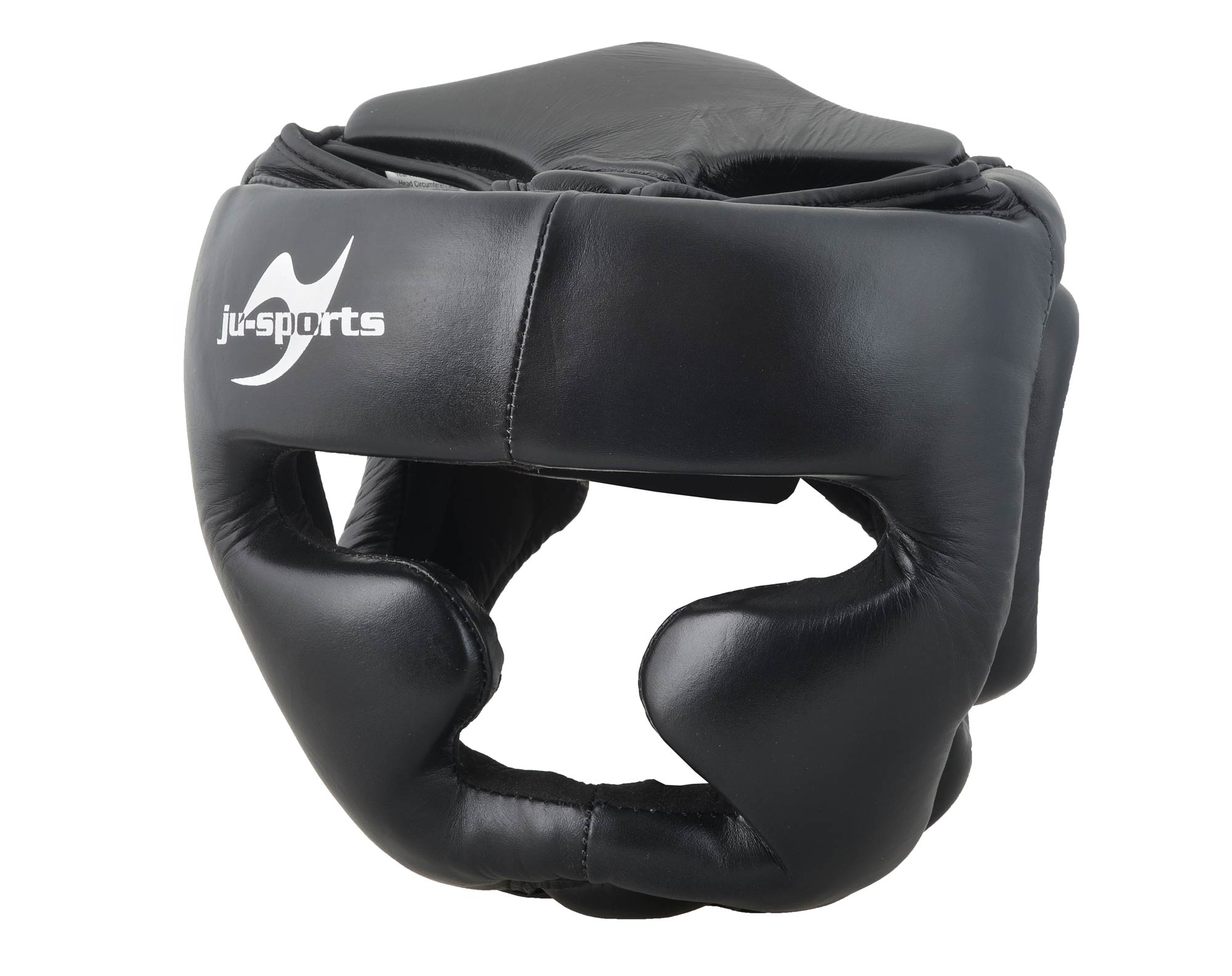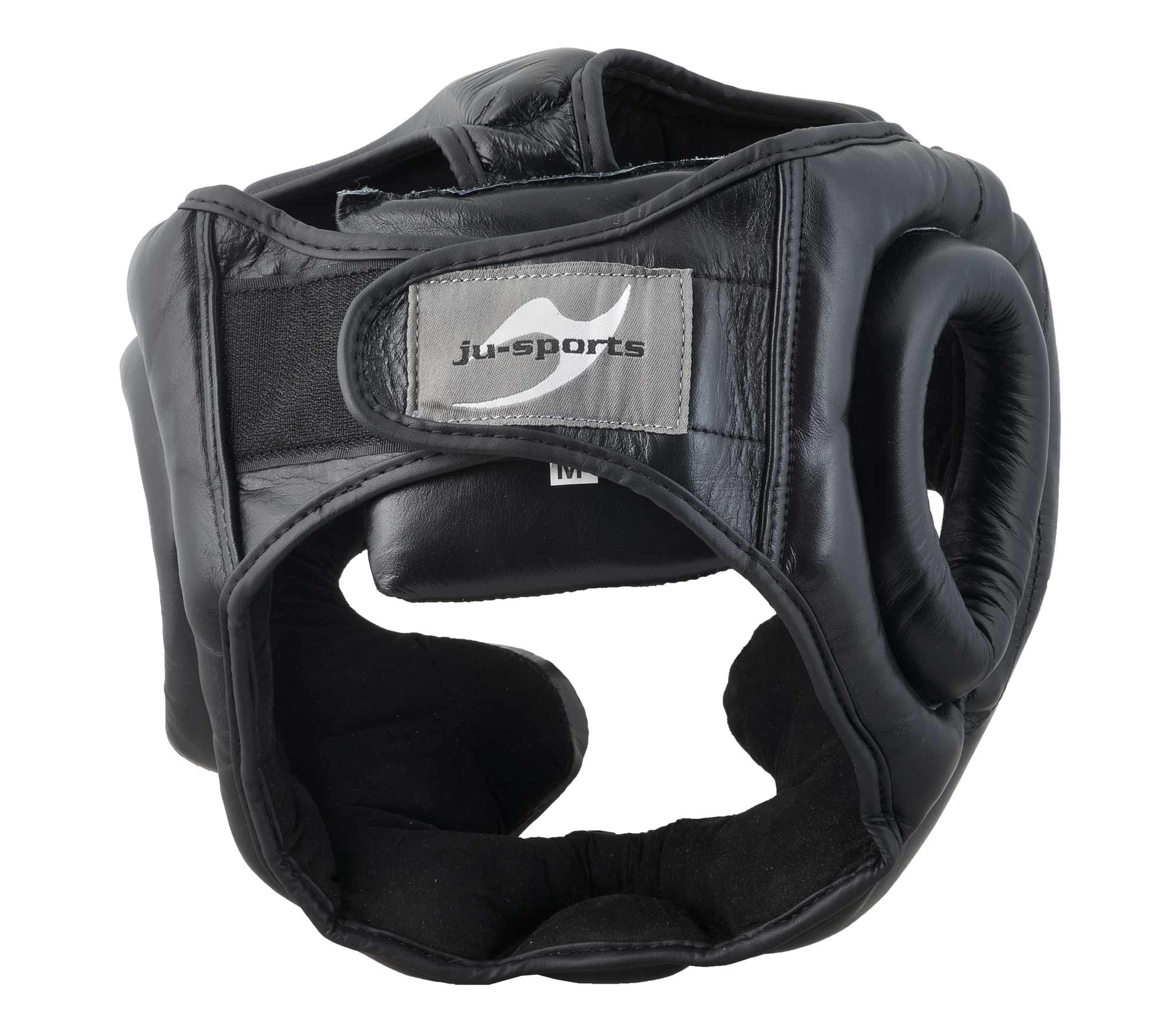 Kopfschutz aus bestem Rindsleder, optimal für Boxen, Kickboxen, Thai Boxen und andere Kampfsportarten. Der Kopfschutz ist mit Kinn- und Jochbeinschutz ausgestattet. Auch die Ohren haben einen Schutzring, um bei Haken von außen geschützt zu sein. Der Mehrfach-Klettverschluss auf der Rückseite sorgt für perfekten Sitz, auch oben kann der Kopfschutz durch eine Zusatzschnürung angepasst werden.