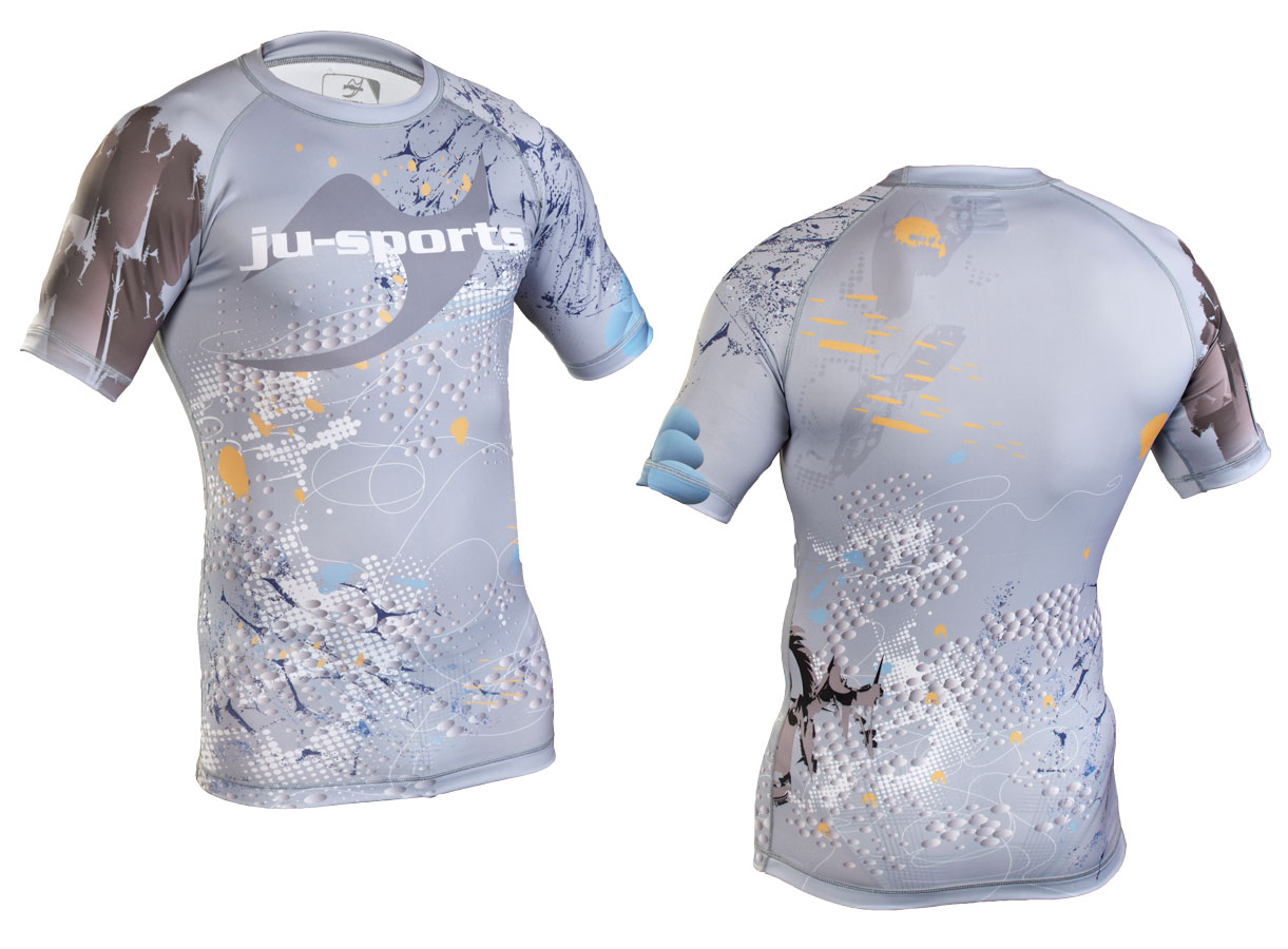 Die neuen Ju-Sports Rash Guards sind liebevoll designed. Das Sublimationsdruckverfahren druckt die Farbe direkt in die Faser. Leider ist es bei dem teilweise filigranen Design unmöglich, dieses so weben zu lassen.Das heißt, alle Ju-Sports Design Rash-Guards sind gedruckt. Daher bleiben die Unterfäden weiß. Wir empfehlen daher, das Rash Guard nicht unter einem Gi zu tragen, da die Baumwolle die Unterfäden heraufscheuert.Dies beeinträchtig nicht die Funktion des Rashguards, ist somit kein Qualitätsmangel und technisch bedingt , führt aber bei Betrachtung aus der Nähe zu leichten optischen Einbußen.