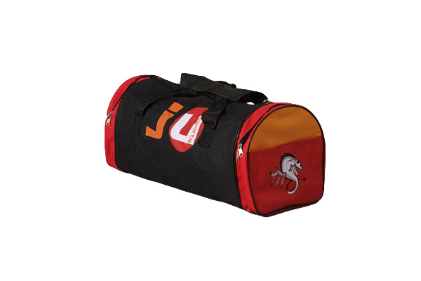 Tasche im 3-Farben-Look aus strapazierfähigem Nylon-Material, mit seitlich aufgesetzten Fächern und Drachenmotiv.