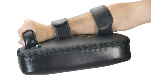 Das Schlagpolster ist 39 x 22 cm und 8 cm dick, hat hinten zwei Klettschlaufen für die Unterarme für optimalen Halt und einen Griff zum Festhalten Optimal zum Trainieren von Kicks oder Fauststößen oder Ellenbogenschlägen etc., aus feinstem Kalbsleder in Ju-Sports Gold Line Qualität