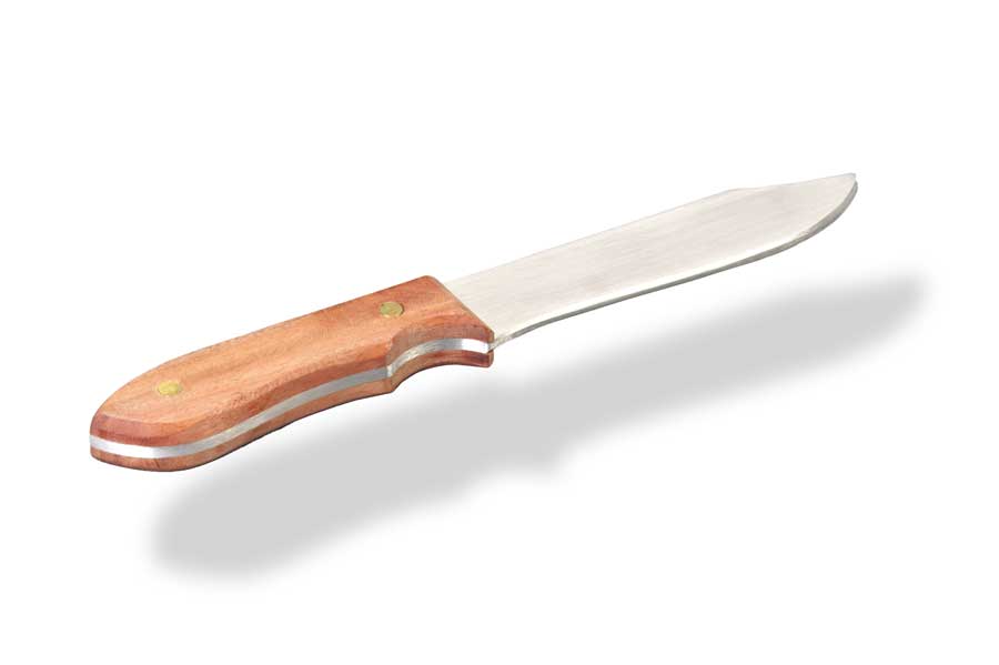 Trainingsmesser aus Aluminium mit stumpfer Klinge und Echtholzgriff Länge: 25 cm