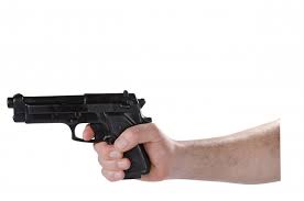 In Optik und Gewicht realistisch anmutende, schwere Plastikpistole für das Selbstverteidigungstraining.