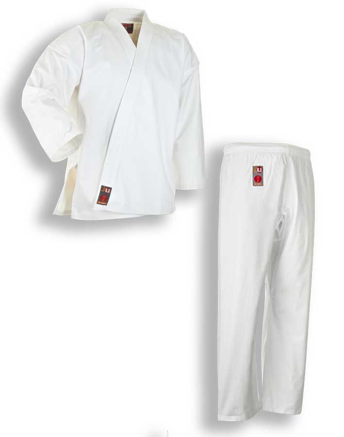 Das klassische, leichte Anfänger-Modell für Kids und Einsteiger (8 oz). Ein Karategi, der trotz seines günstigen Preises qualitativ einiges zu bieten hat. Bestehend aus Jacke und Hose mit Gummizug und weißem Gürtel.100% Baumwolle. Die Größenangabe bezieht sich auf die Körpergröße, eine Person von 150 cm Körpergröße sollte einen 150ger Anzug nehmen, wenn die Größe dazwischen liegt, dann bitte die nächste Größe wählen. Bei kräftigem Körperbau im Zweifelsfall auch die nächste Größe wählen. Ein weißer Gürtel ist mit dabei.