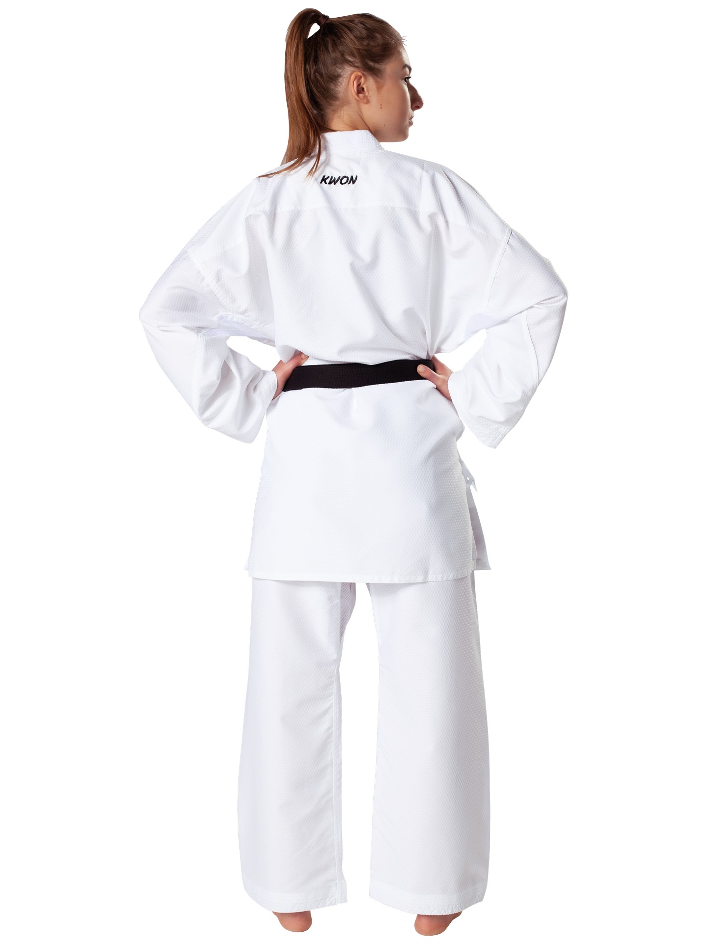 Der Karateanzug Competitive Plus ist für den Kumite-Wettkampf konzipiert und besteht aus 100% extraleichter Microfaser. Der Karateanzug im modernen Kumite-Schnitt hat eine lange Jacke, sowie extra lange Ärmel und Hosenbeine. Die Hose mit Elastikbund hat einen zusätzliche Schnürung.